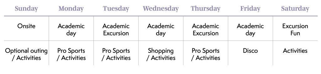 - Due escursioni di un’intera giornata a settimana tra cui gli Harry Potter Studios.