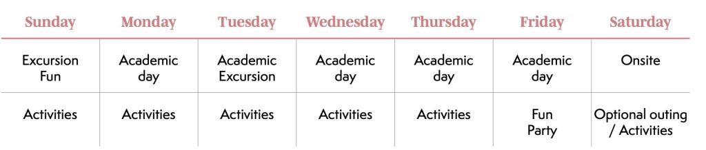 - Programma di apprendimento di 24 ore alla settimana composto da 12 ore di lezione di inglese e 12 ore di laboratori esperienziali.
